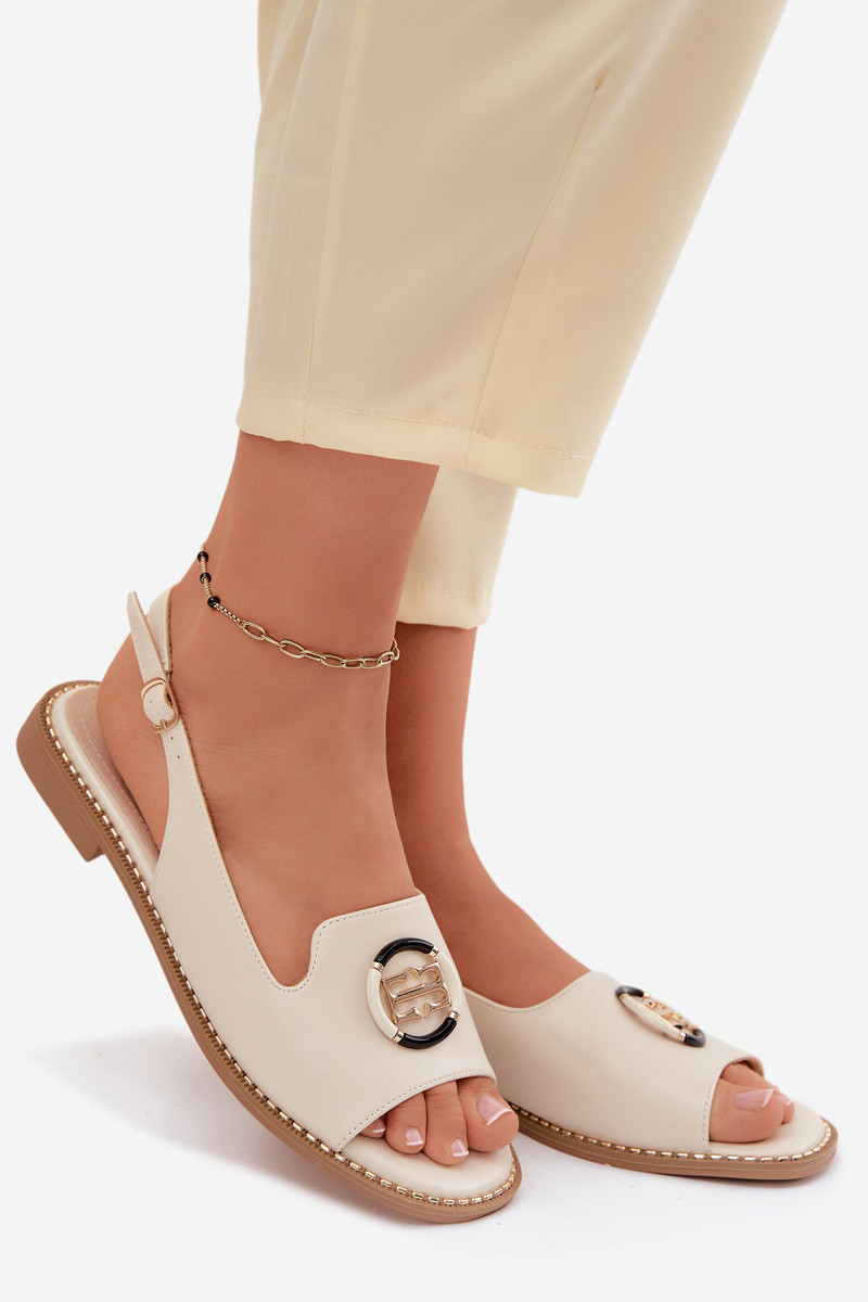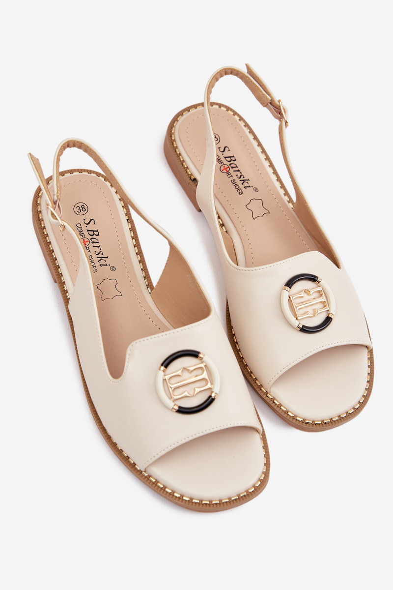Damensandalen mit breiten Absätzen mit Ornamenten S.Barski KV61-6037 Creme farben