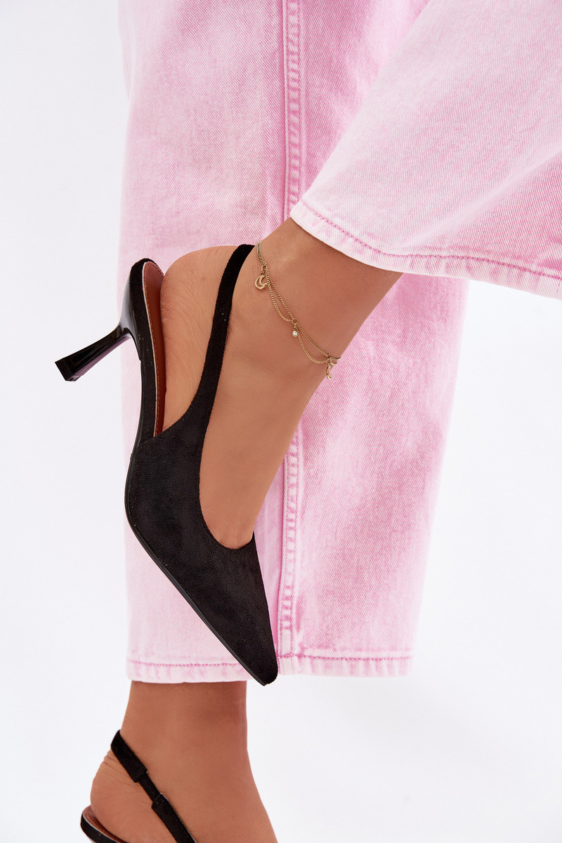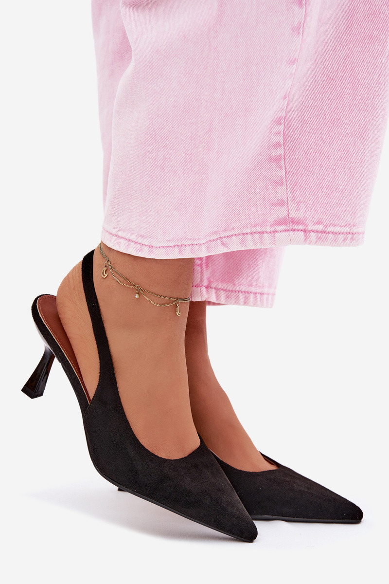 Damen rosa Sandalen mit dünnen Absatz aus Kunstvelours Saria