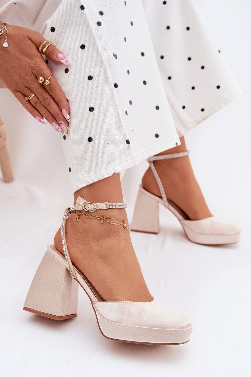 Damensandalen Auf massiven Absätzen Typu Słupek Pasek mit blitzenden Augen goldene Farbe Seraphina