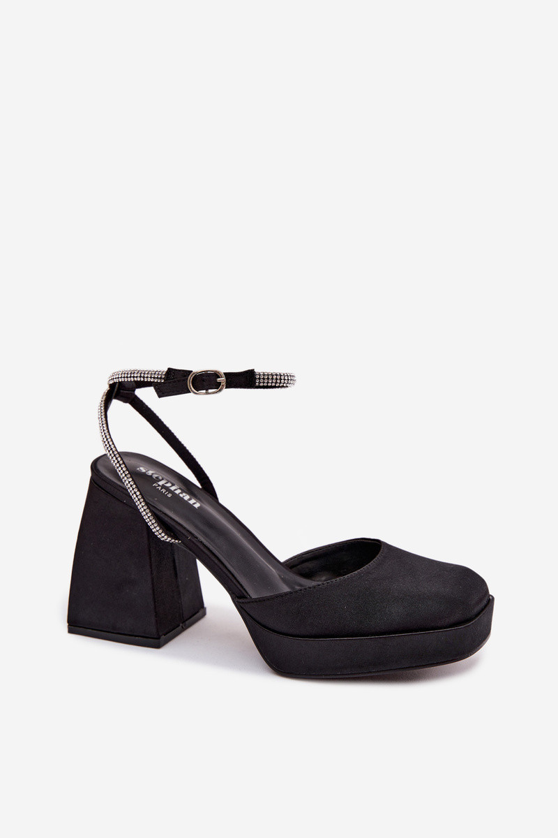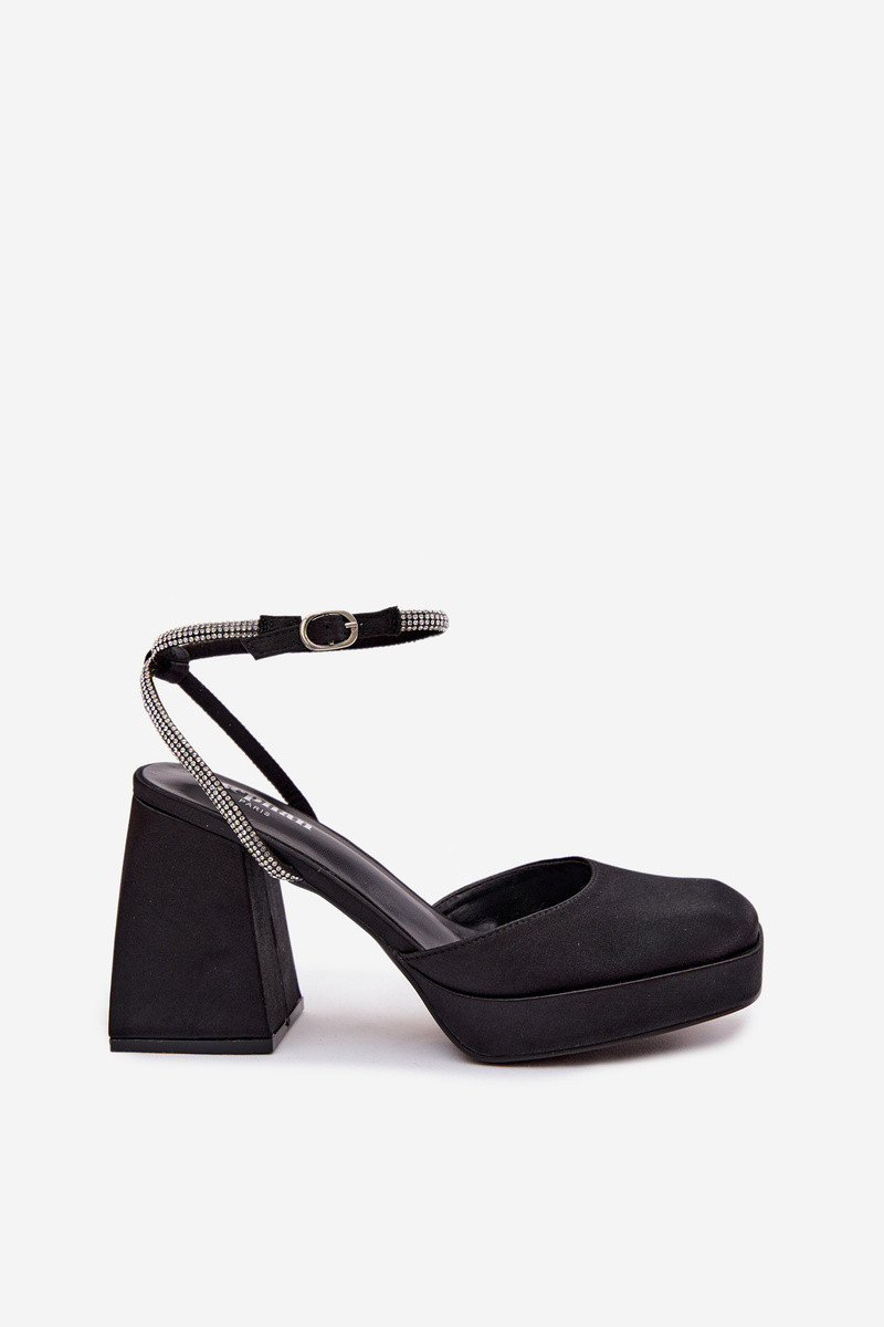 Damensandalen Auf massiven Absätzen Typu Słupek Pasek mit blitzenden Augen schZuarze Farbe Seraphina