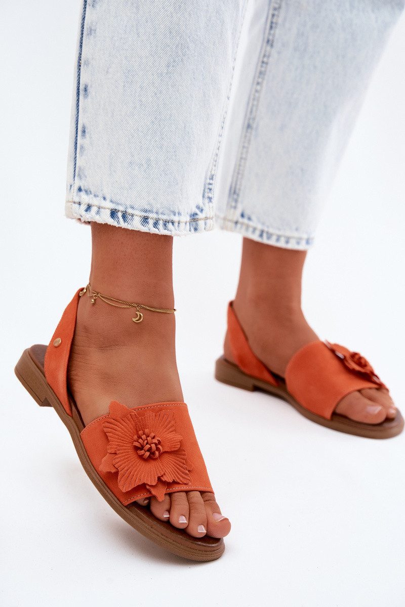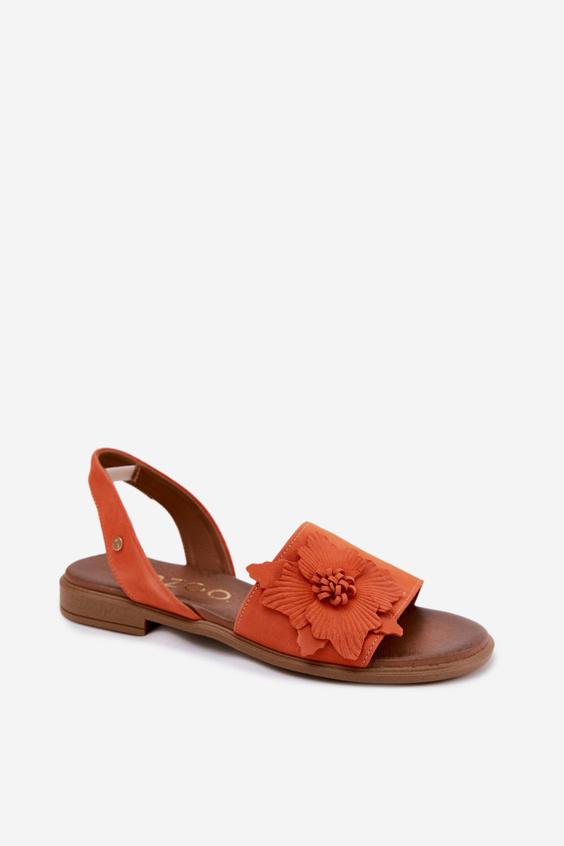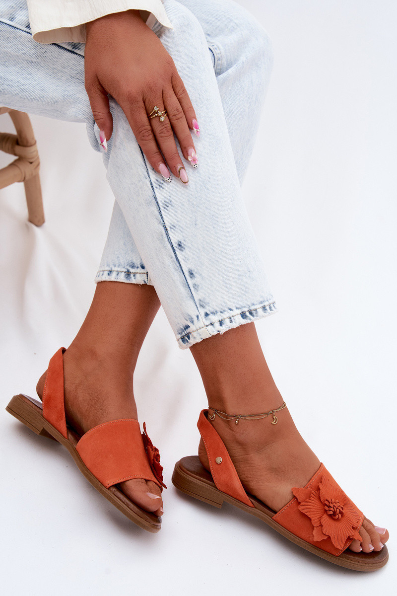 Haut INildledersandalen mit breiten Absätzen Mit Dekorationen Eine Blume Zazoo 407471 braune Farbe