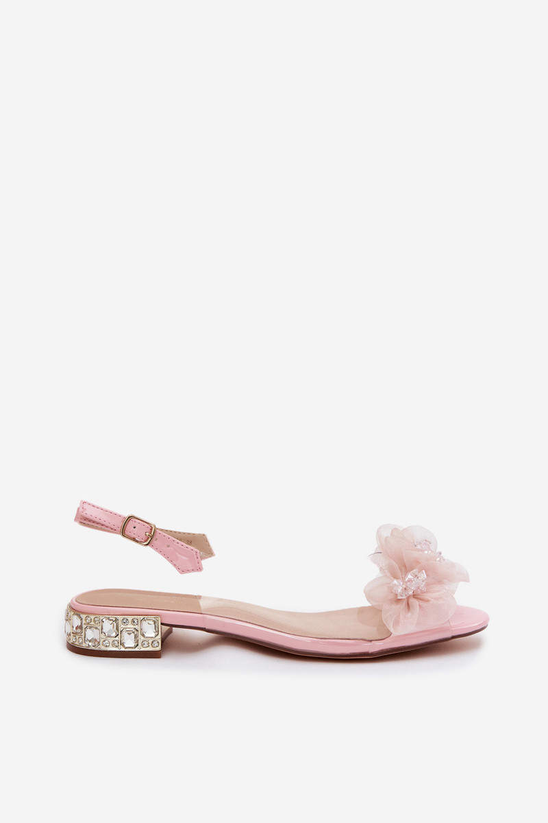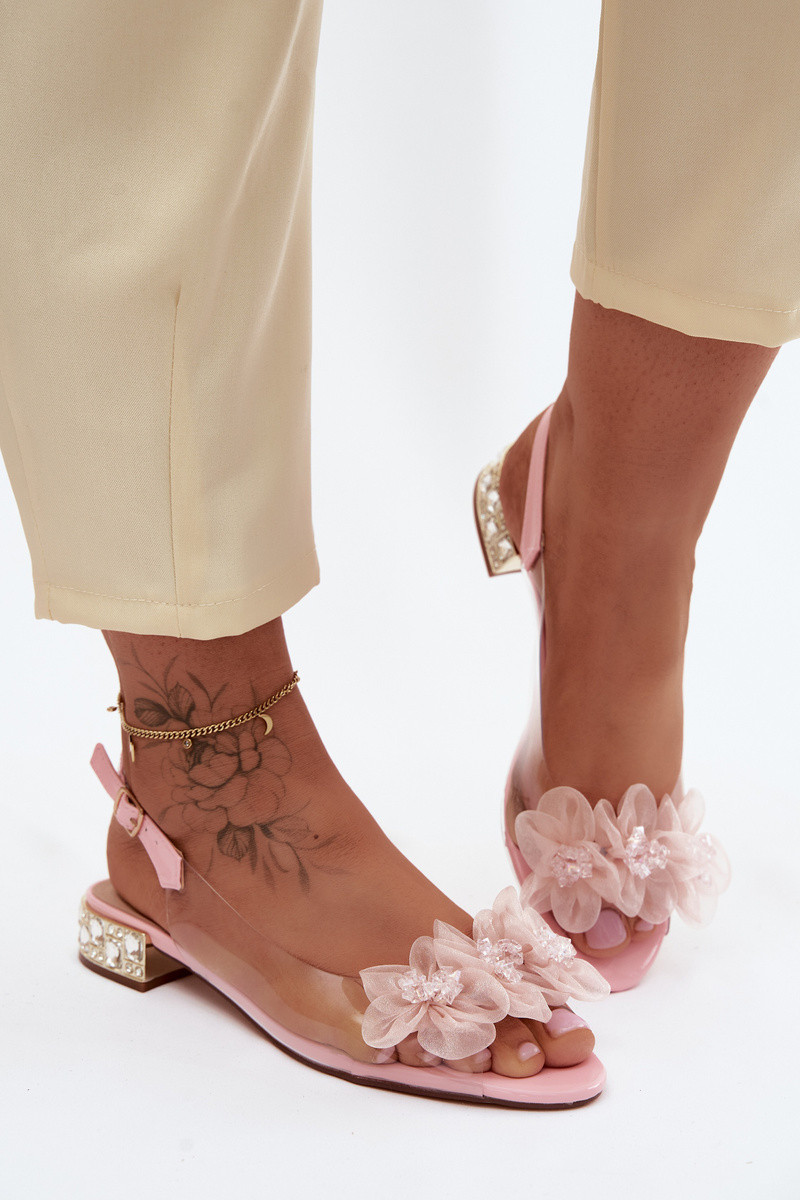 Transparente Sandalen mit funkelnden Steinen und Netzblumenmotiven D&A MR61-9006 rosa