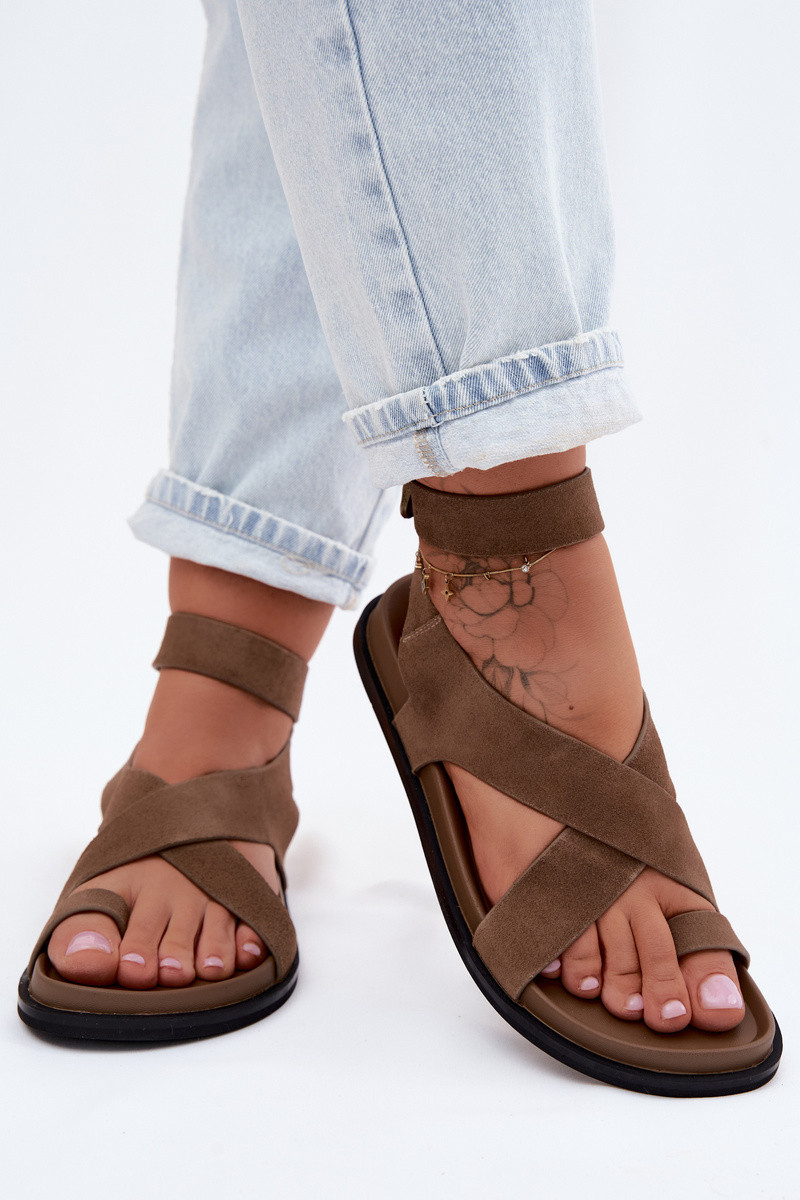 Flache Sandalen aus natürlichem Wildleder D&A CR61-3049 schokoladenbraun