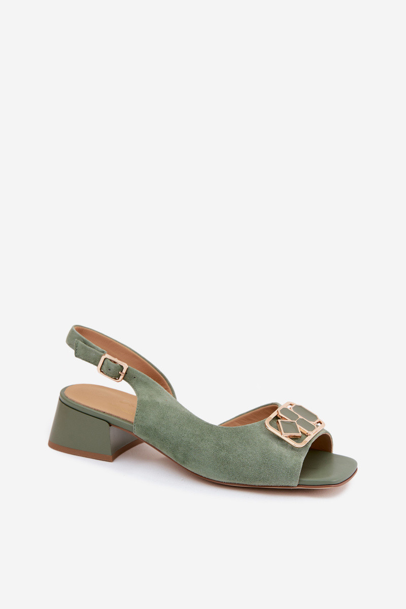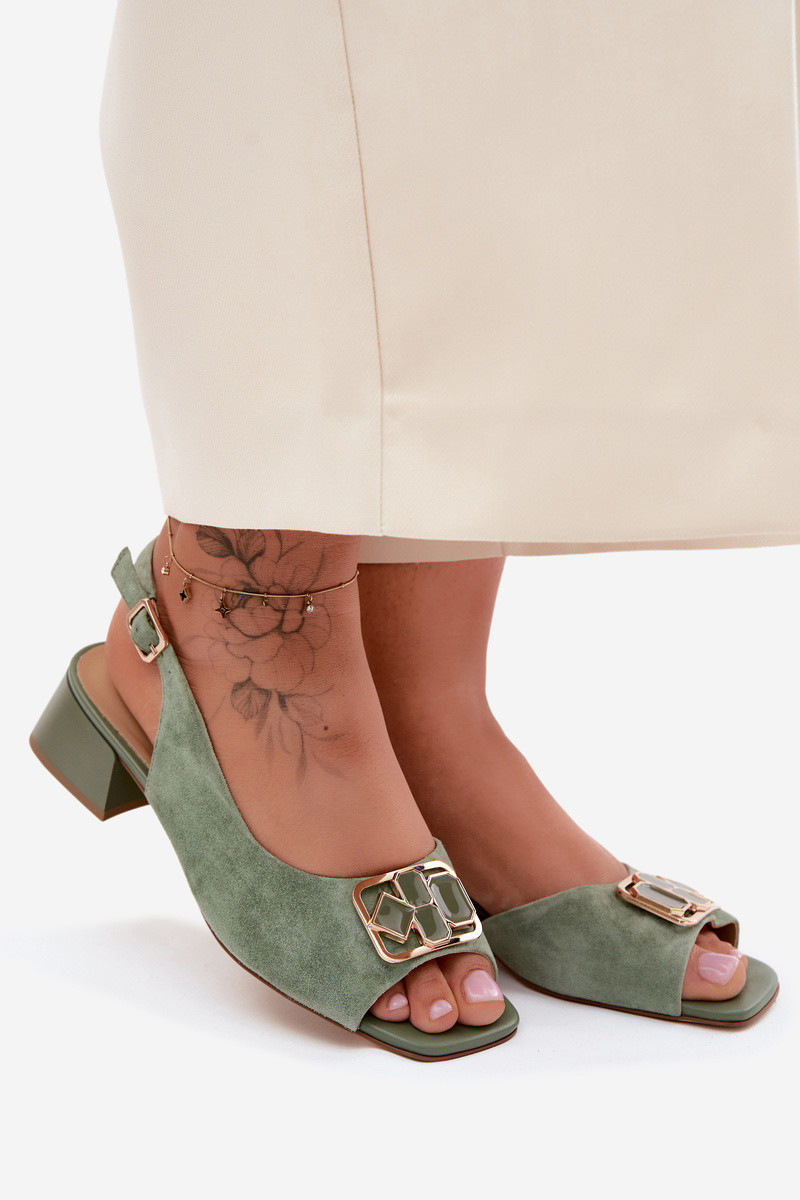 Elegante Sandalen mit Absatz aus grünem Kunstveloursleder