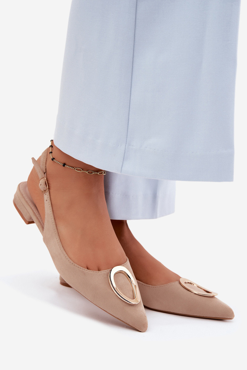 Damensandalen mit breiten Absätzen mit Ornamenten Beige Sparkle
