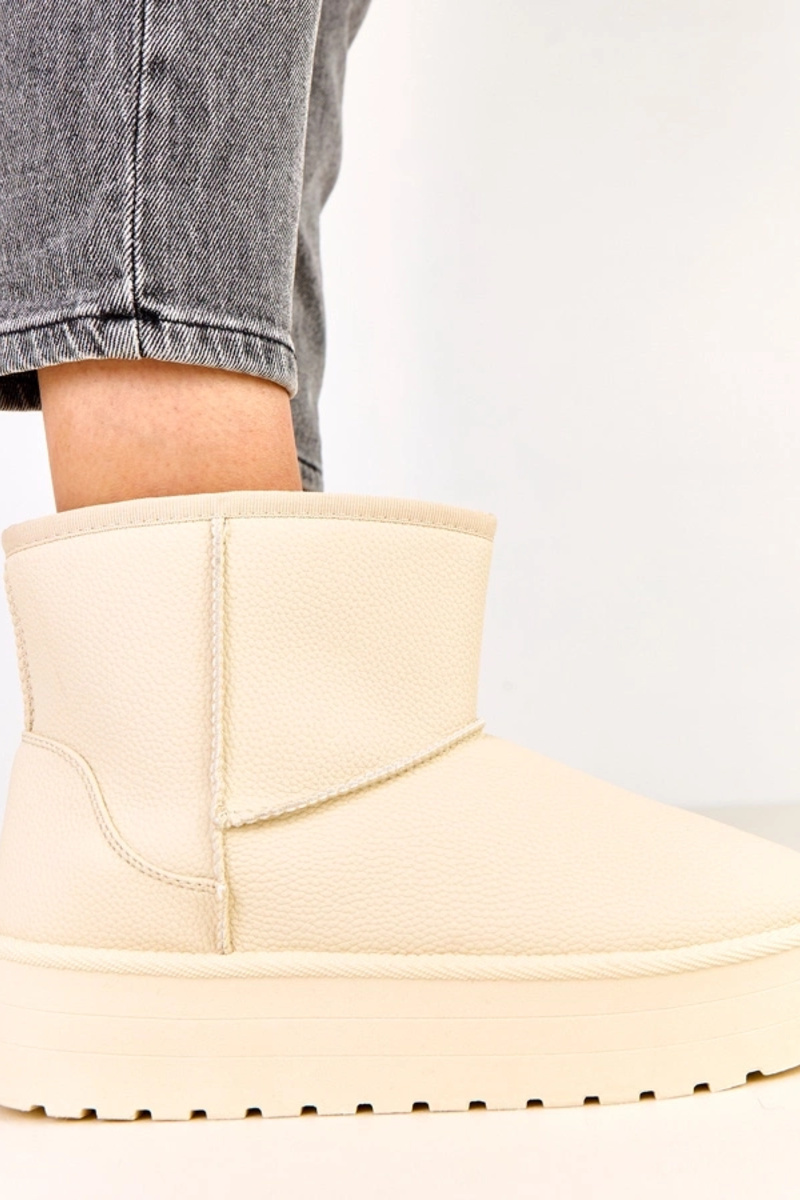 Beige niedrige Schneestiefel mit Plateausohle aus Kunstleder, Reinol
