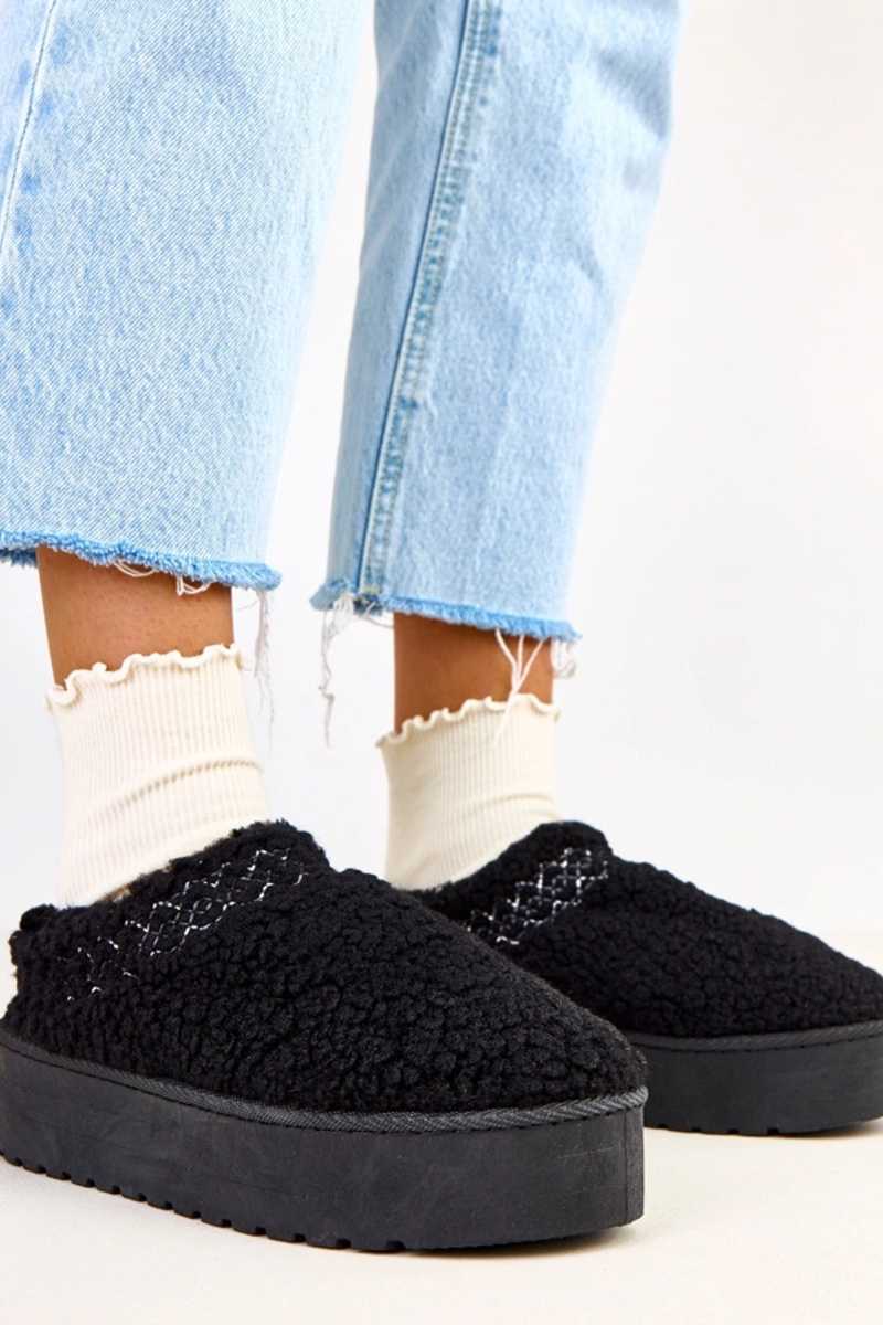 Schwarze flache Schneestiefel mit Plattform Royana