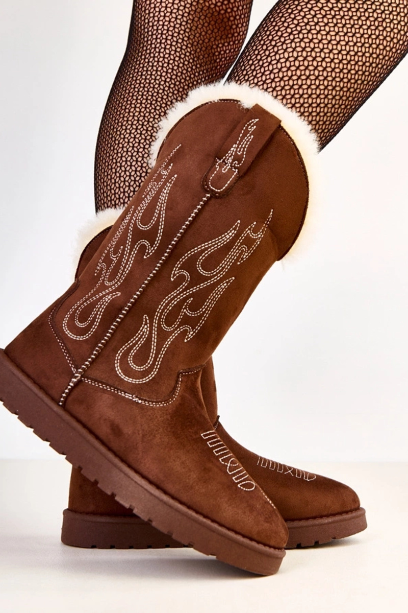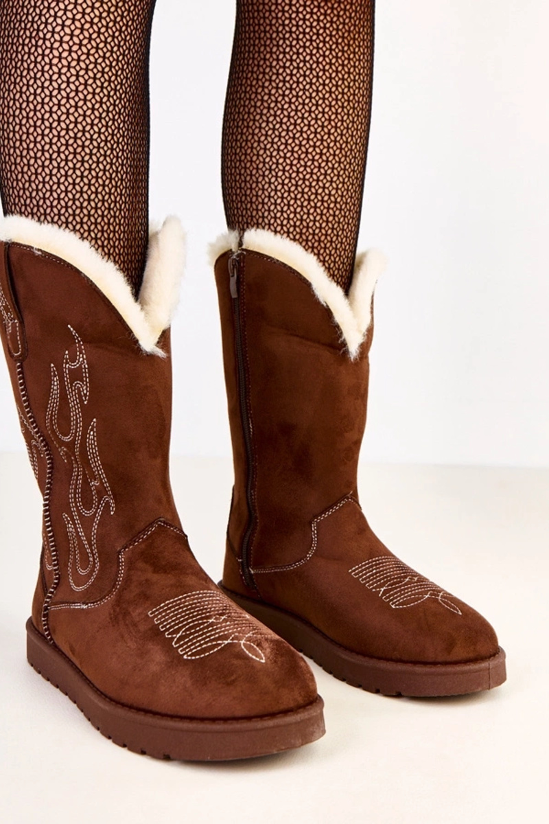 Braune Schneestiefel mit Stickerei an der Schaft Darena