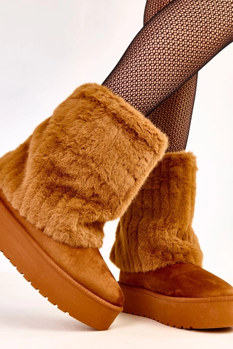 Braune Schneestiefel mit Plattform und Fellschaft Leda