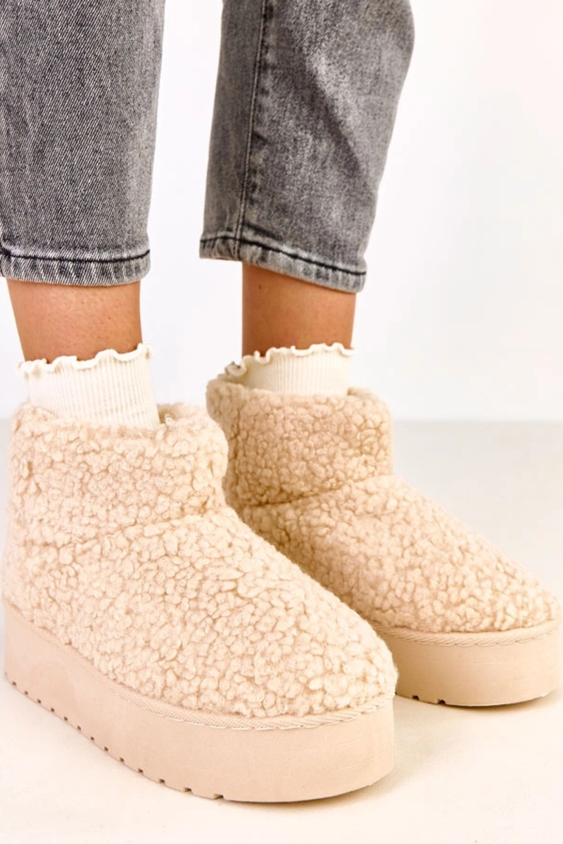 Sandfarbene Schneestiefel mit Lammfellschaft Lasso