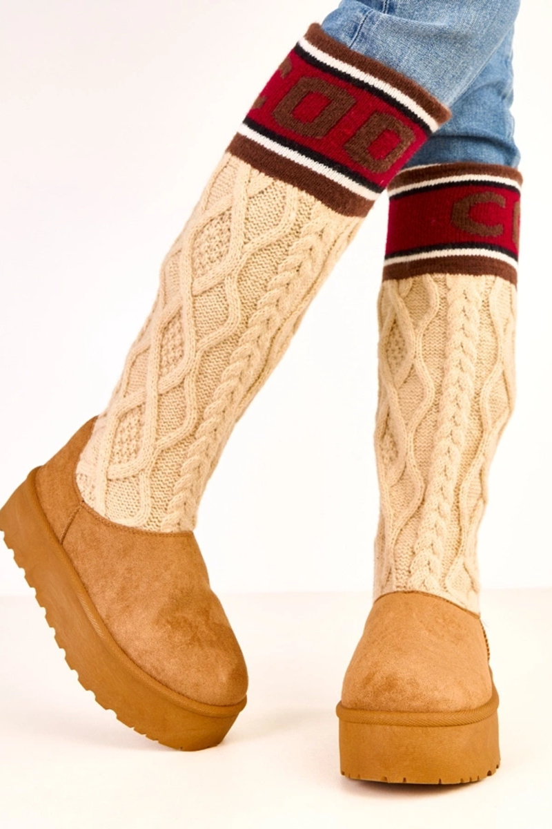 Braune Schneestiefel mit Plateausohle und hohem Schaft Coo