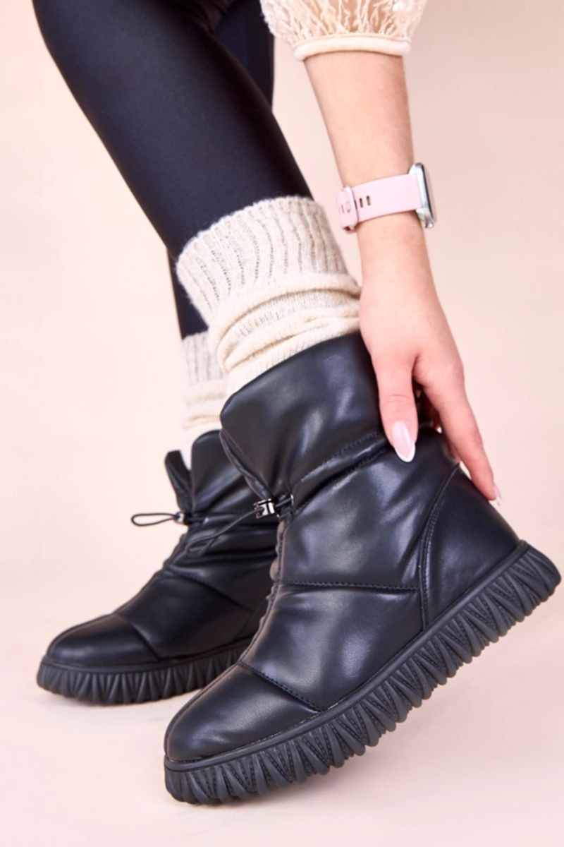 Schwarze Schneestiefel aus echtem Leder mit Gummi Raschmi
