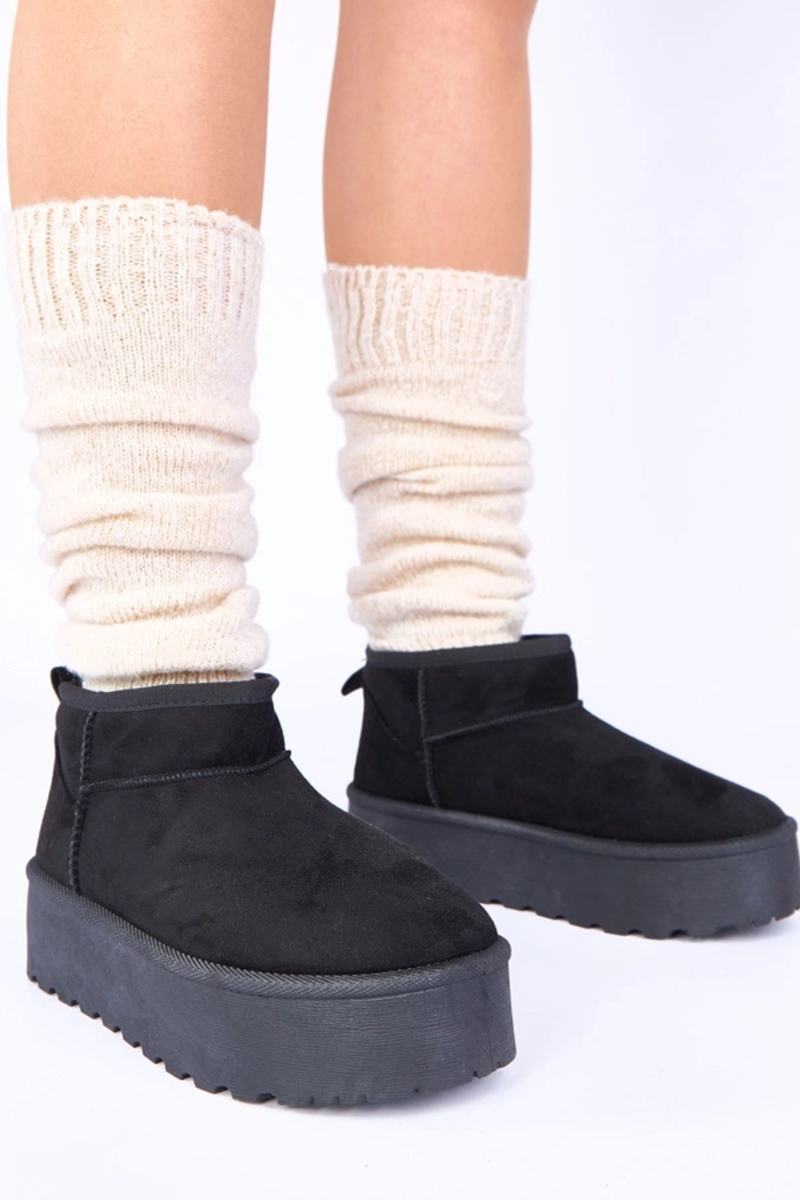 Schwarze Plattform Schneestiefel mit Pelzfutter Mouna