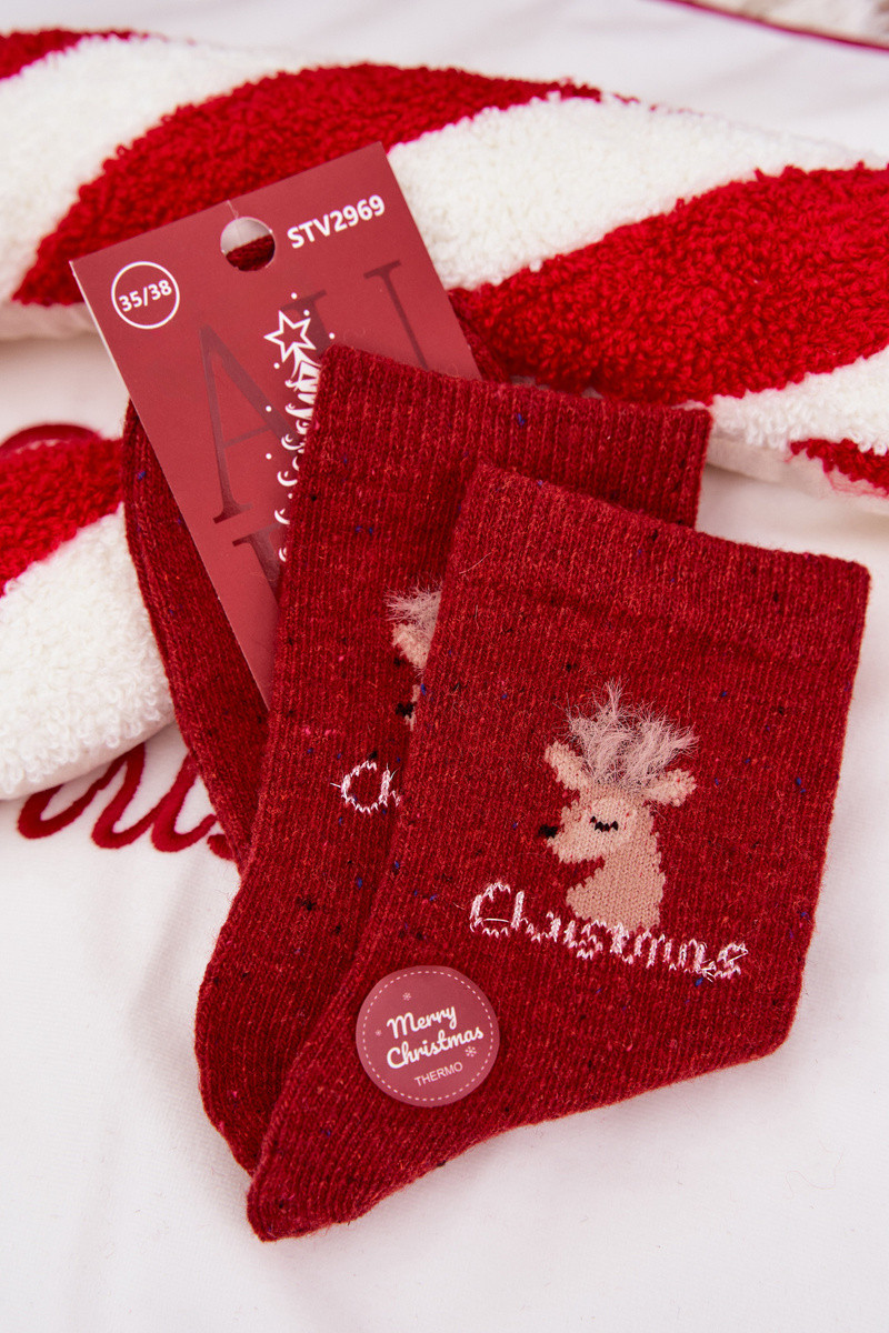 Socken Feminin INeihnachten mit Hirsch INełna Alpaka rote Farbe
