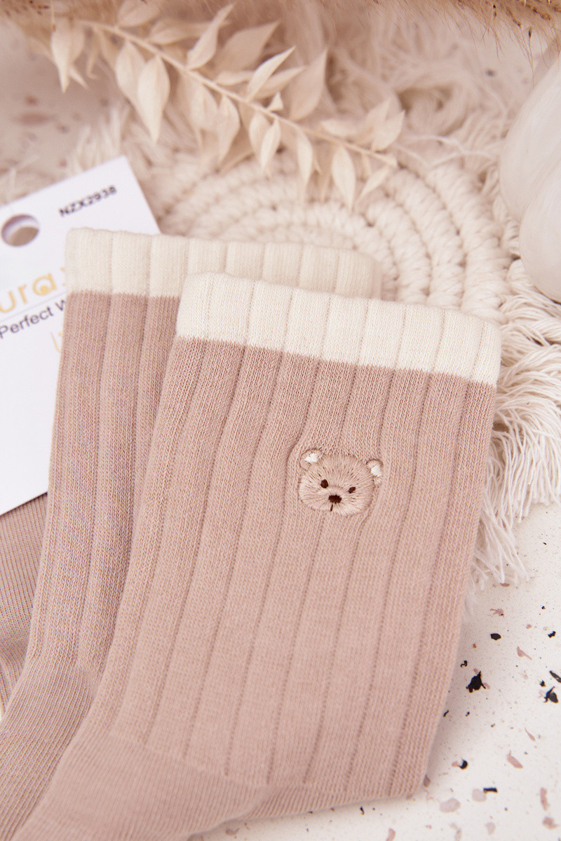 Socken Feminin BaZuełnianeKleinm Teddybärenm Beige