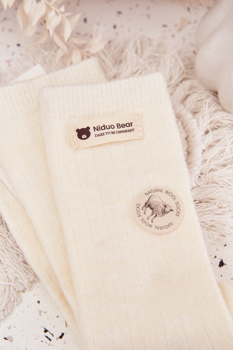 Warme Damen-Leinenstrümpfe mit Jacquard-Muster in Elfenbeinfarbe