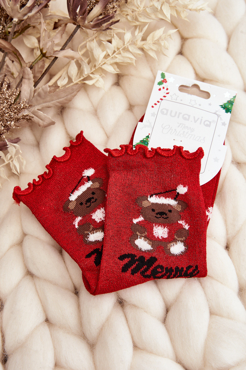 Feminin mit Glanz INeihnachten Skarpety Mit Bär rote Farbe