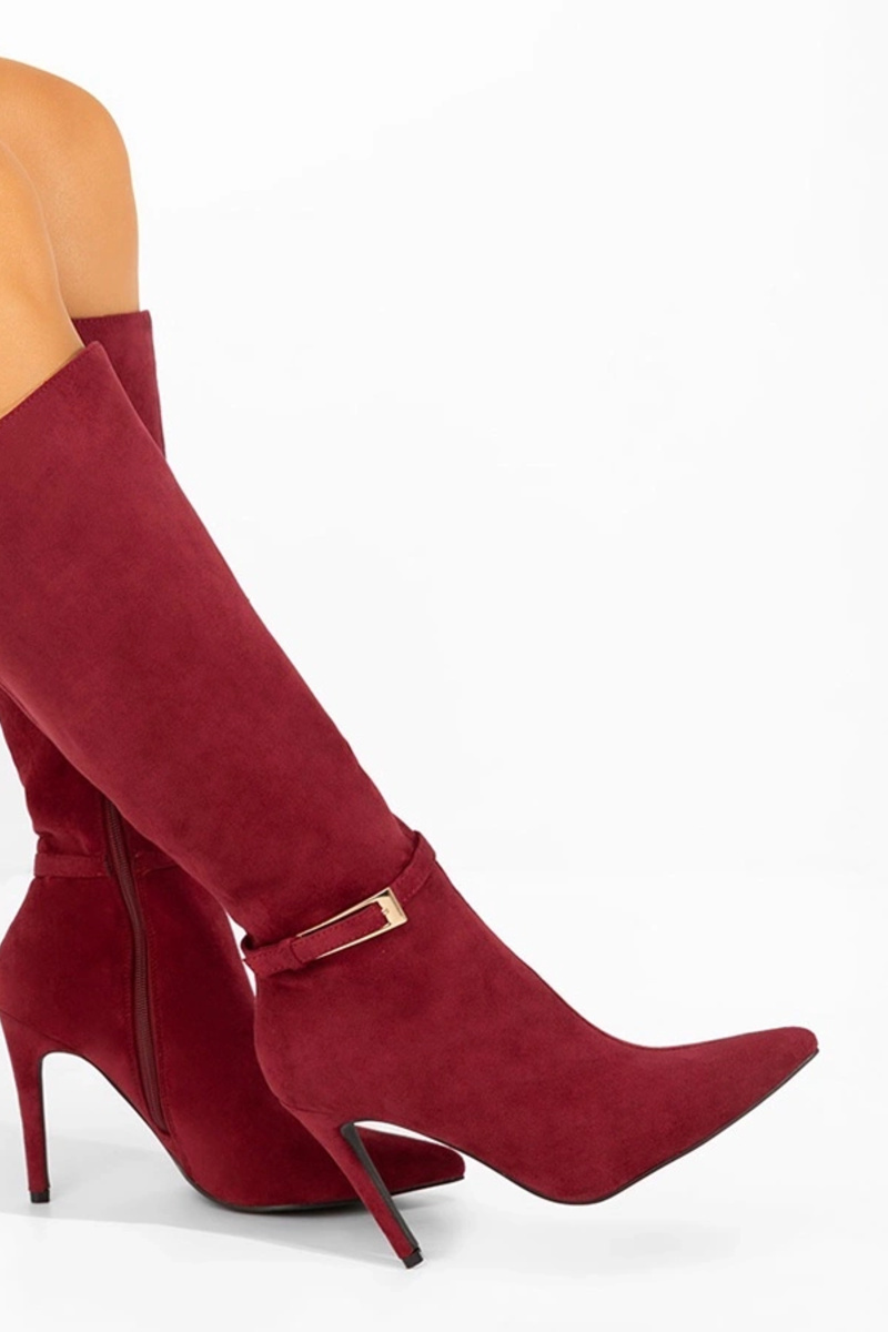 Bordeauxfarbene Overknee-Stiefel mit dekorativer Schnalle Arielle