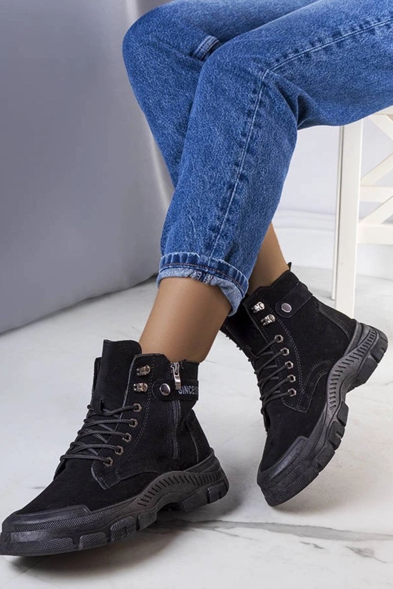 Schwarze isolierte Stiefel aus Kunstvelours Pirangi
