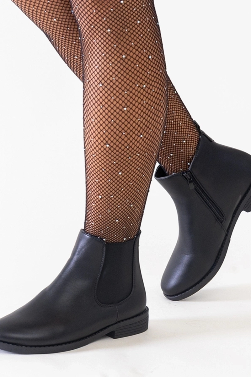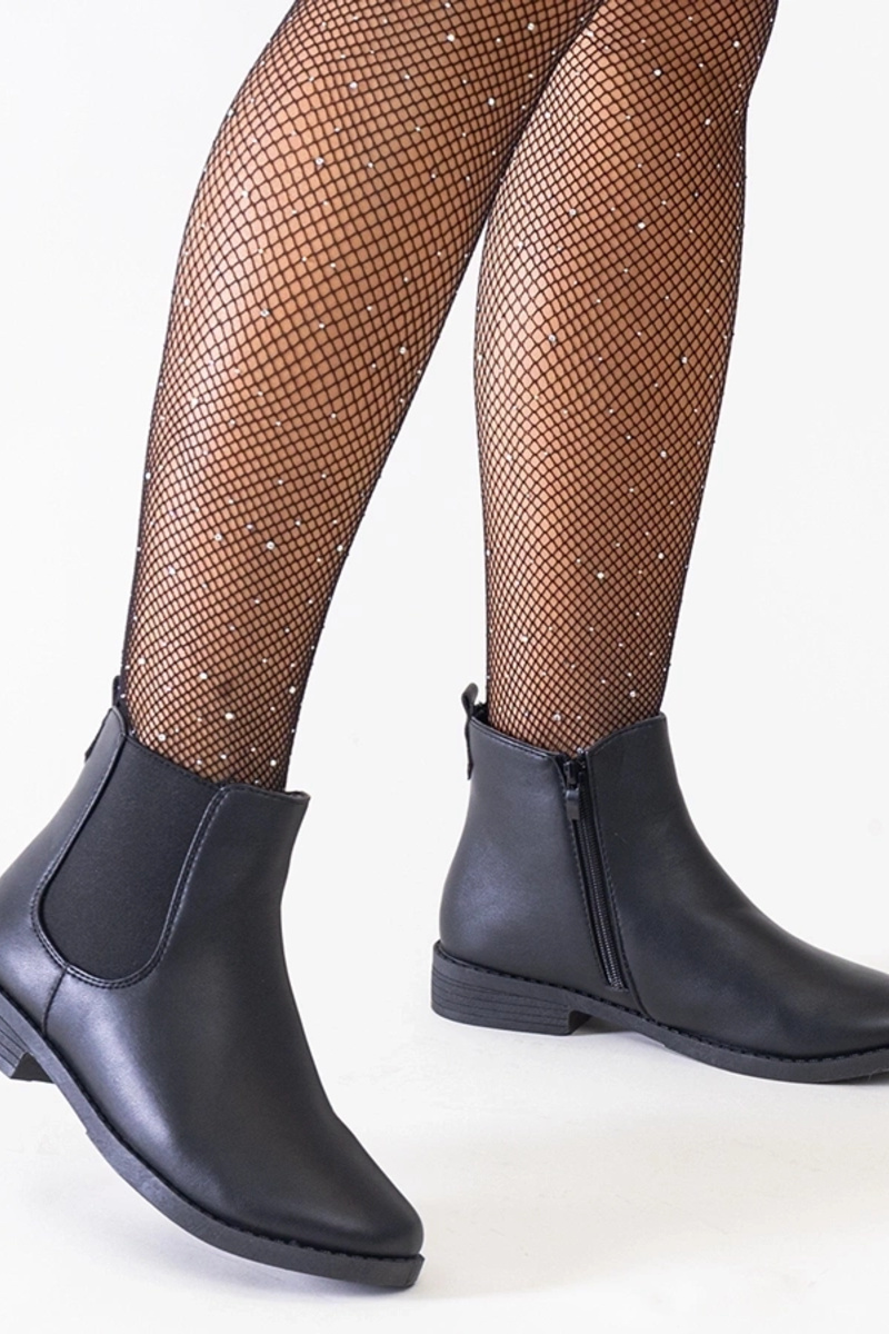 Schwarze klassische Knöchelstiefel mit elastischem Einsatz, Kunstleder Maiza