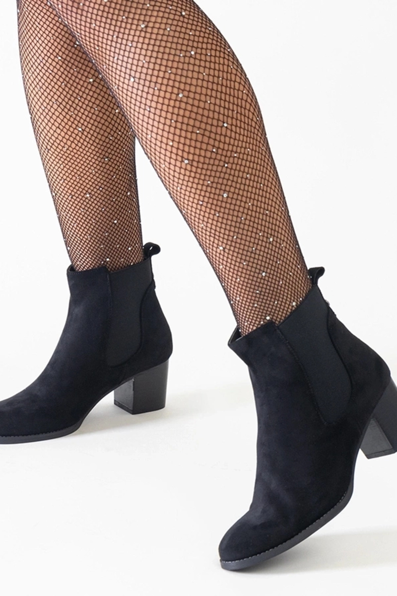 Schwarze Stiefel mit elastischen Einsätzen aus Kunstwildleder Nadisa