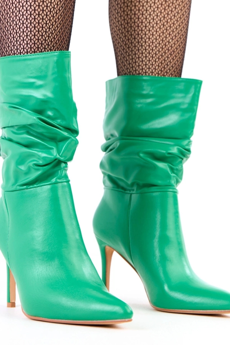 Grüne Stiefeletten mit hohem Absatz und gerafftem Schaft Sairabi