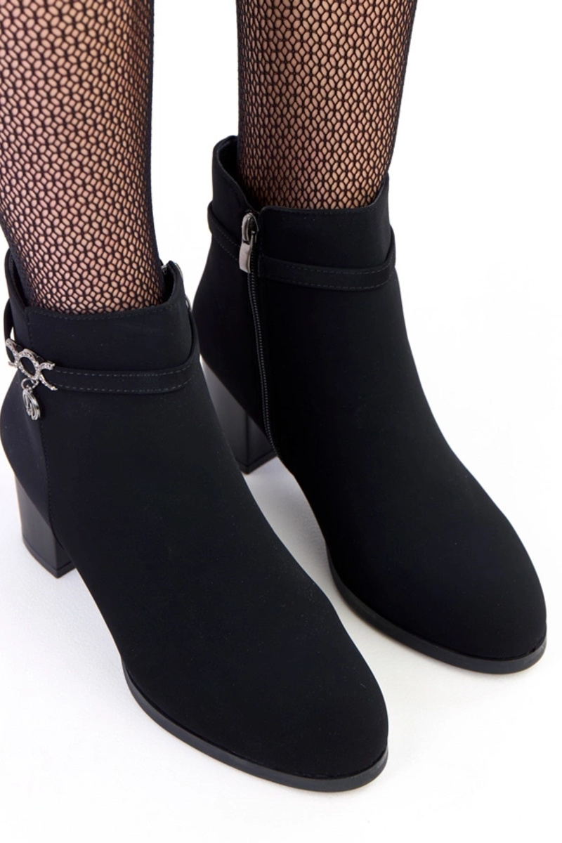 Schwarze Stiefeletten mit dekorativem Eco-Leder-Riemen Vernona
