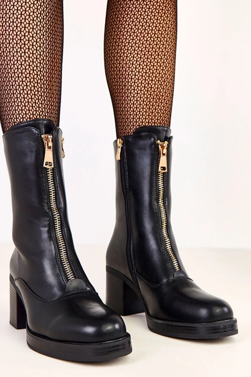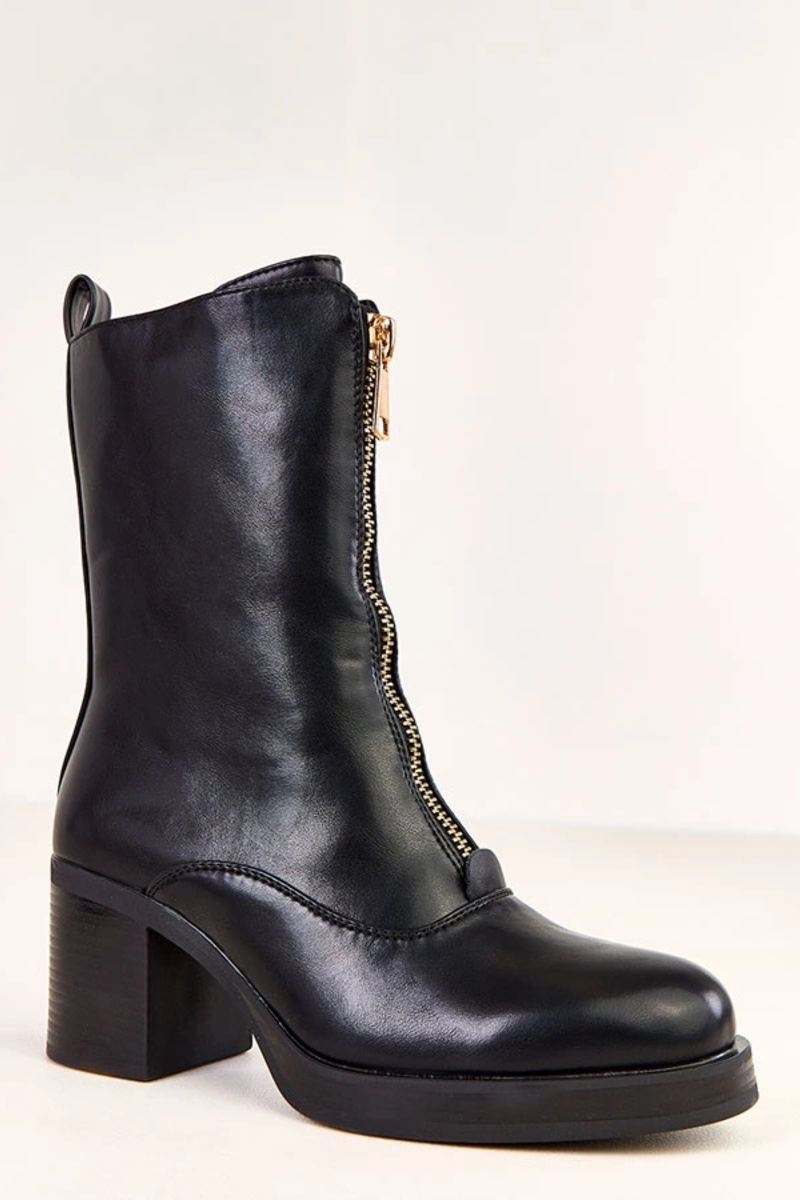 Schwarze Stiefeletten mit Absatz und dekorativem Reißverschluss vorne Erafir