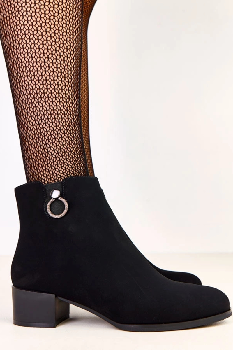 Schwarze Ankle Boots mit Pfennigabsatz und eleganter Verzierung Sevira