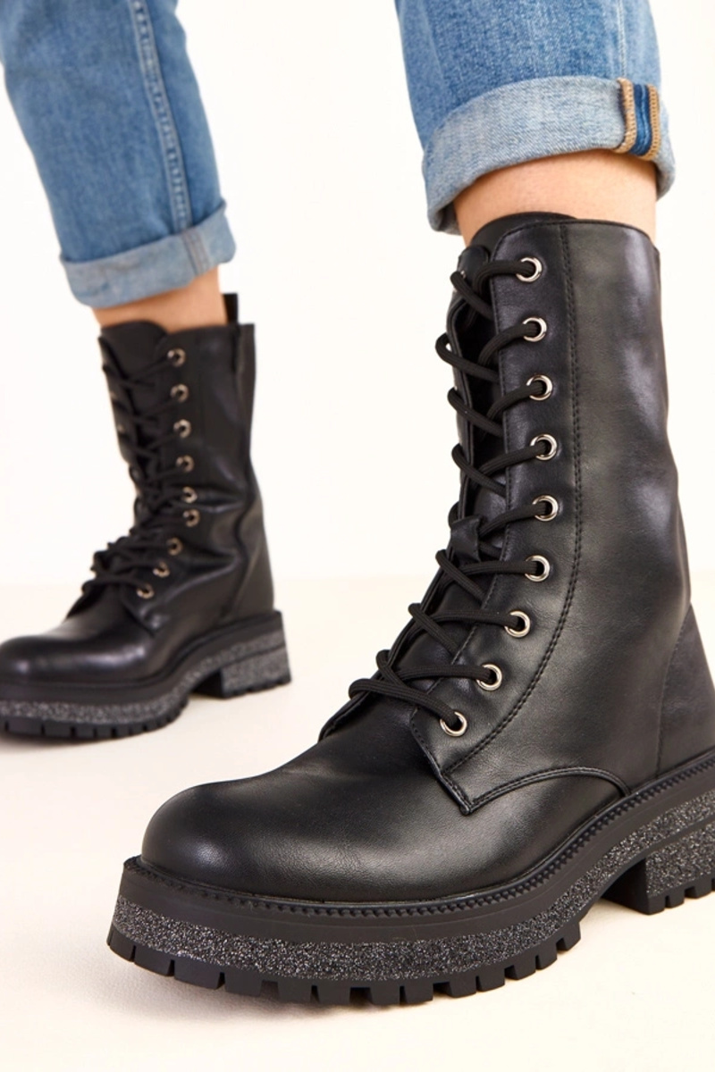 Schwarze Stiefeletten mit Plateausohle und dekorativem Absatz Asevie