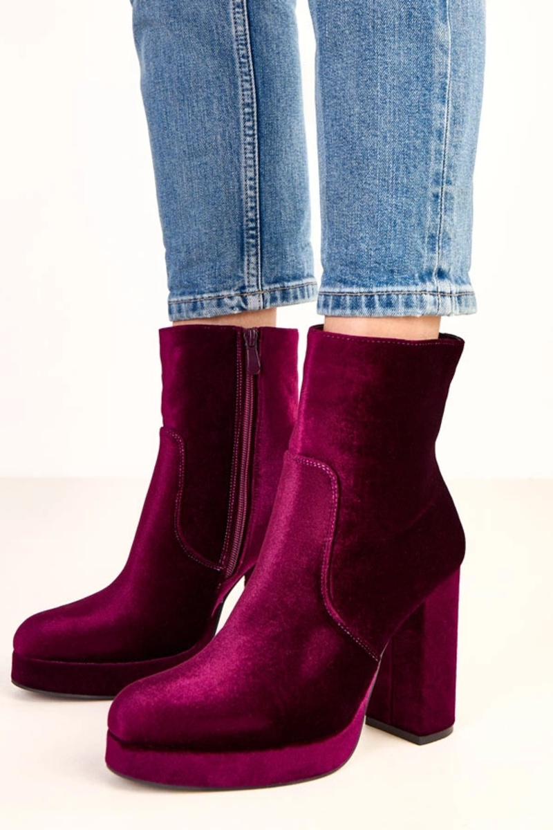 Violette Stiefeletten auf dicken Absätzen mit glänzender Oberfläche Asanda