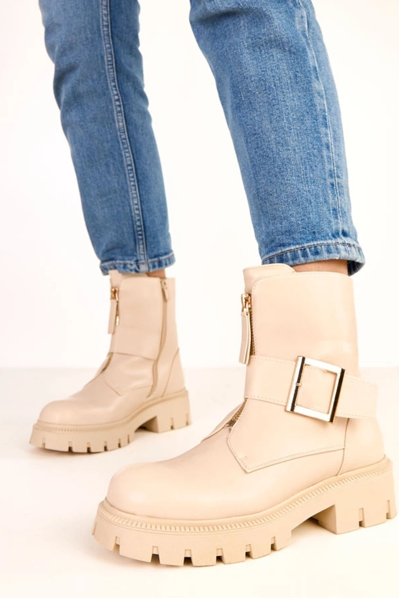 Sandfarbene Stiefeletten auf Plattform mit dekorativer Schnalle Dera