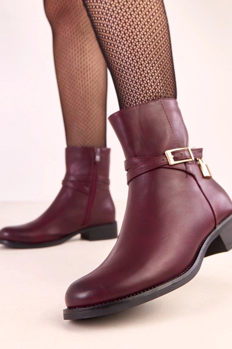 Dunkelrote Stiefeletten Zema mit Schnalle und Schloss