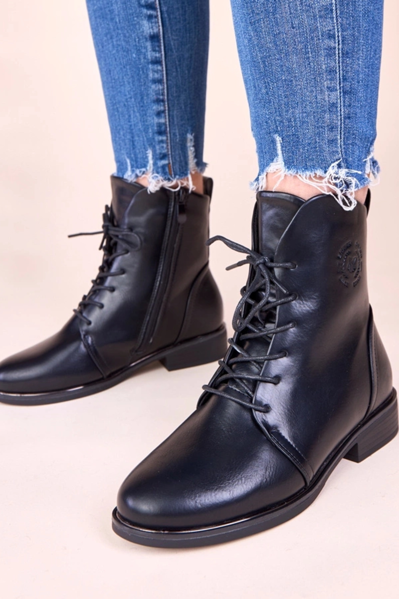 Schwarze warme Stiefeletten mit Schnürung Eladia