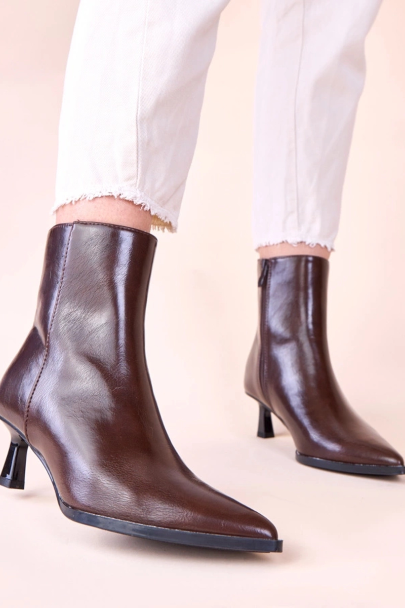 Braune Stiefeletten auf Pfennigabsatz im Entenstil Mordi