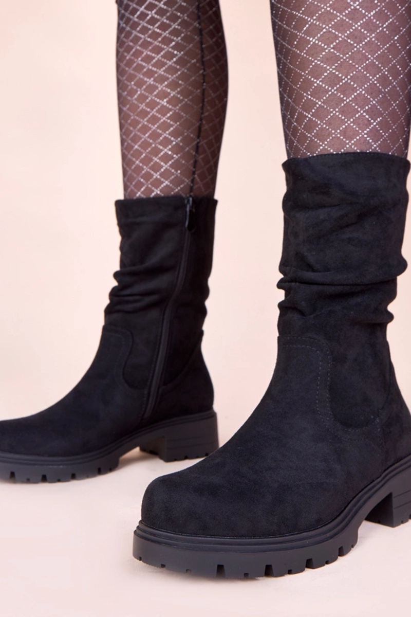Schwarze Stiefeletten auf Plattform mit Falten Malha