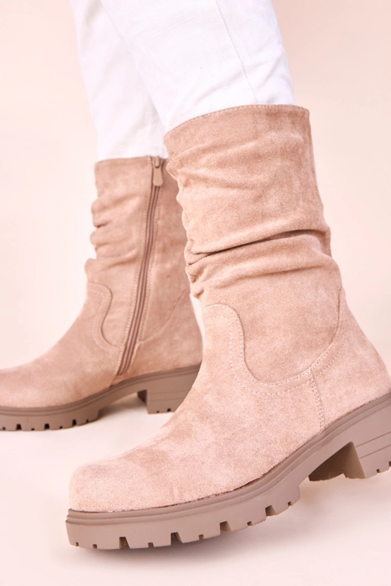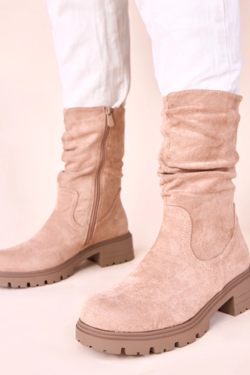 Beige Plateau-Stiefeletten mit Falten Malha