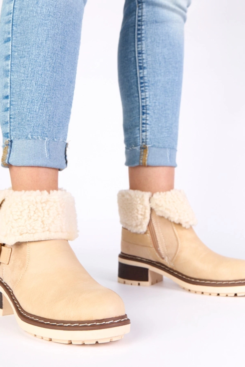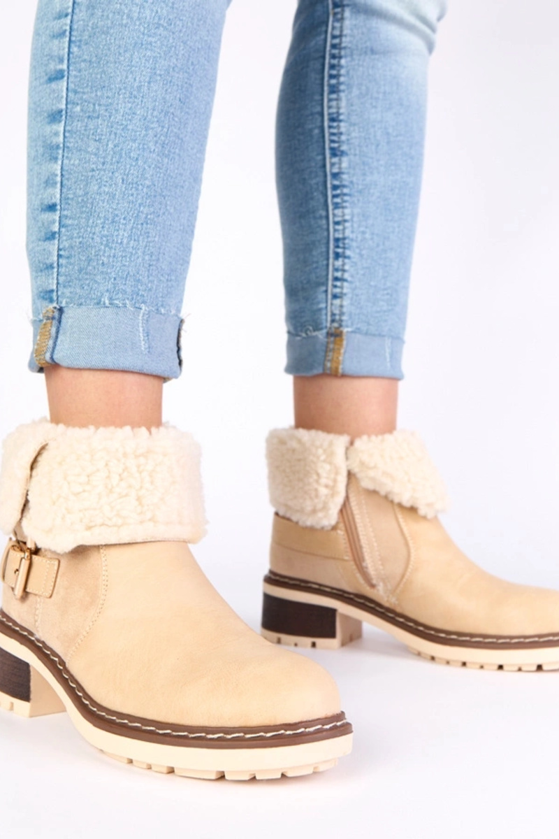 Sandfarbene Stiefeletten mit Absatz und umklappbarem Schaft Olga