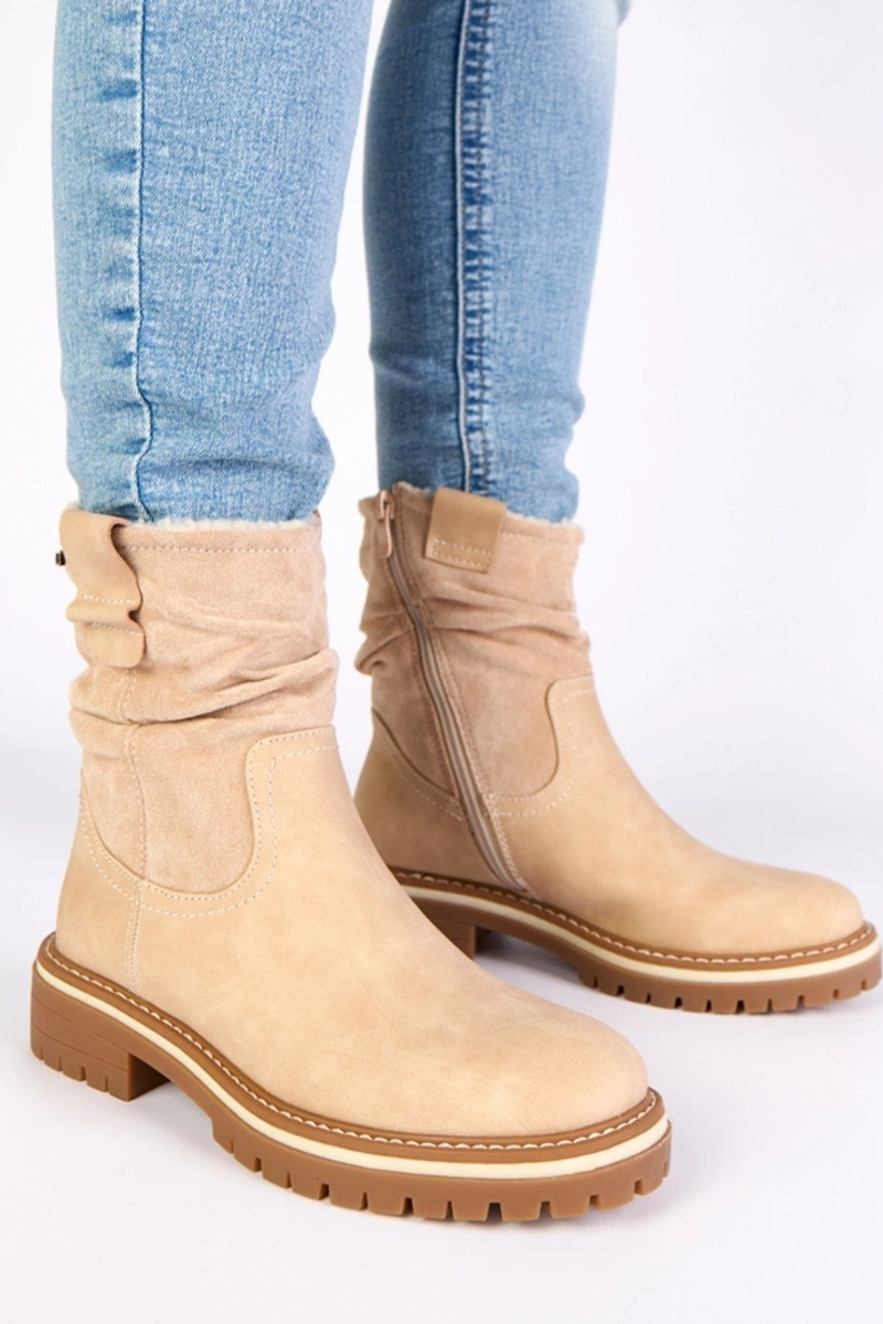 Beige warme Stiefeletten mit gerafft Schaft Lovisa