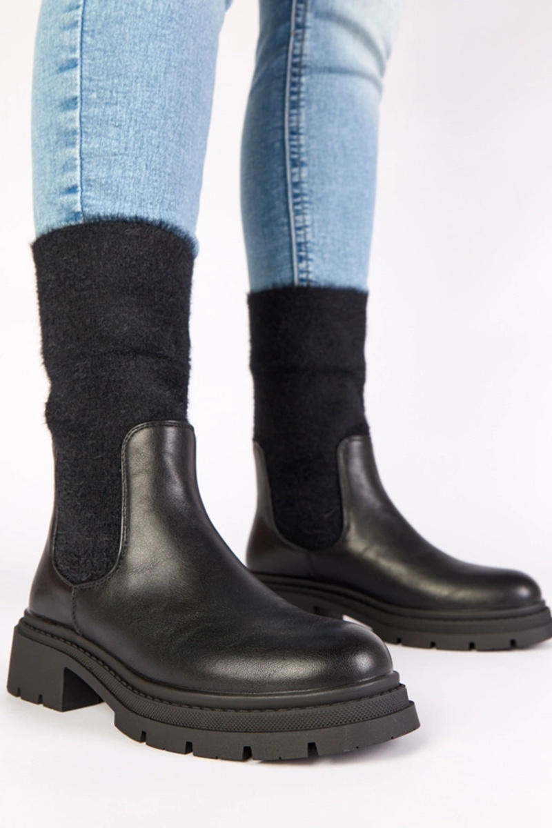 Schwarze Stiefeletten mit elastischem Einsatz und dekorativem Schaft Evelyn