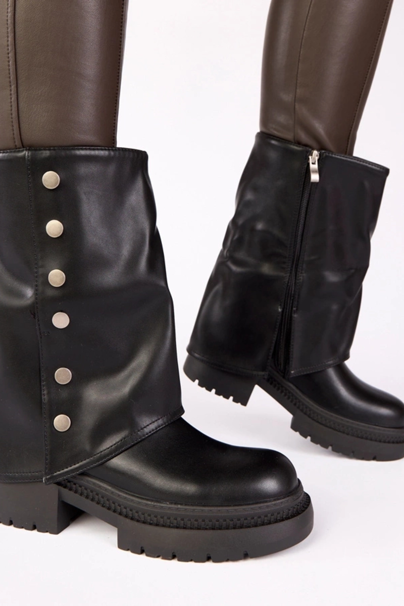 Schwarze Stiefeletten mit umgeschlagenem Schaft auf Plattform Carla