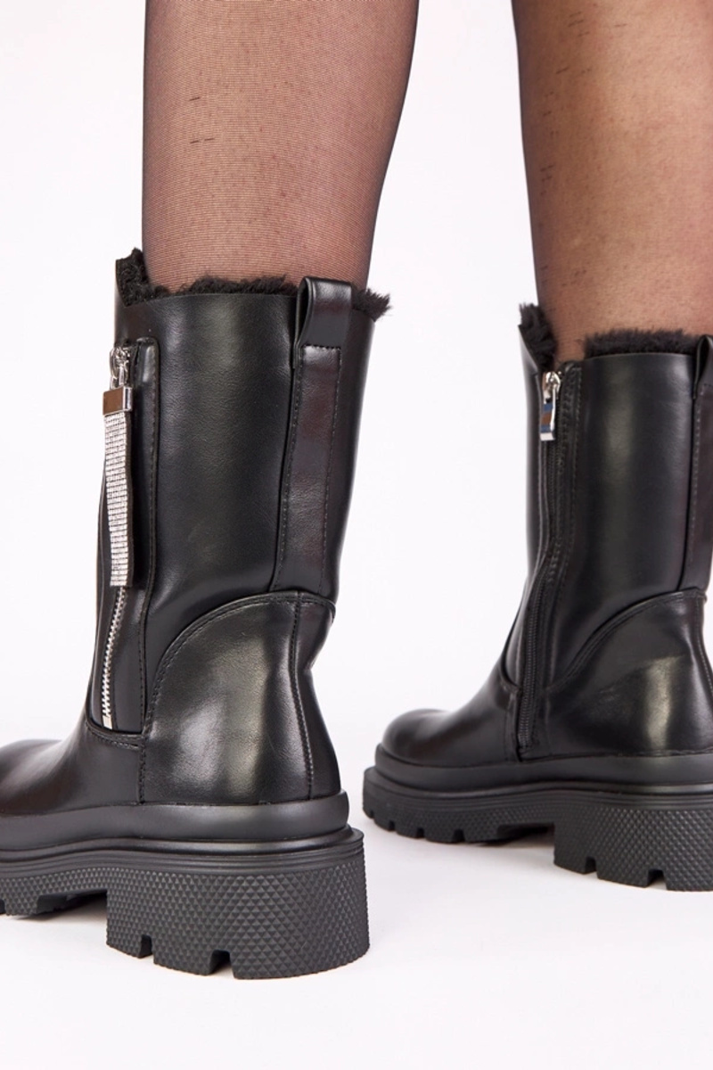 Schwarze Stiefeletten auf Plattform mit dekorativem Reißverschluss mit Zirkonia Asta