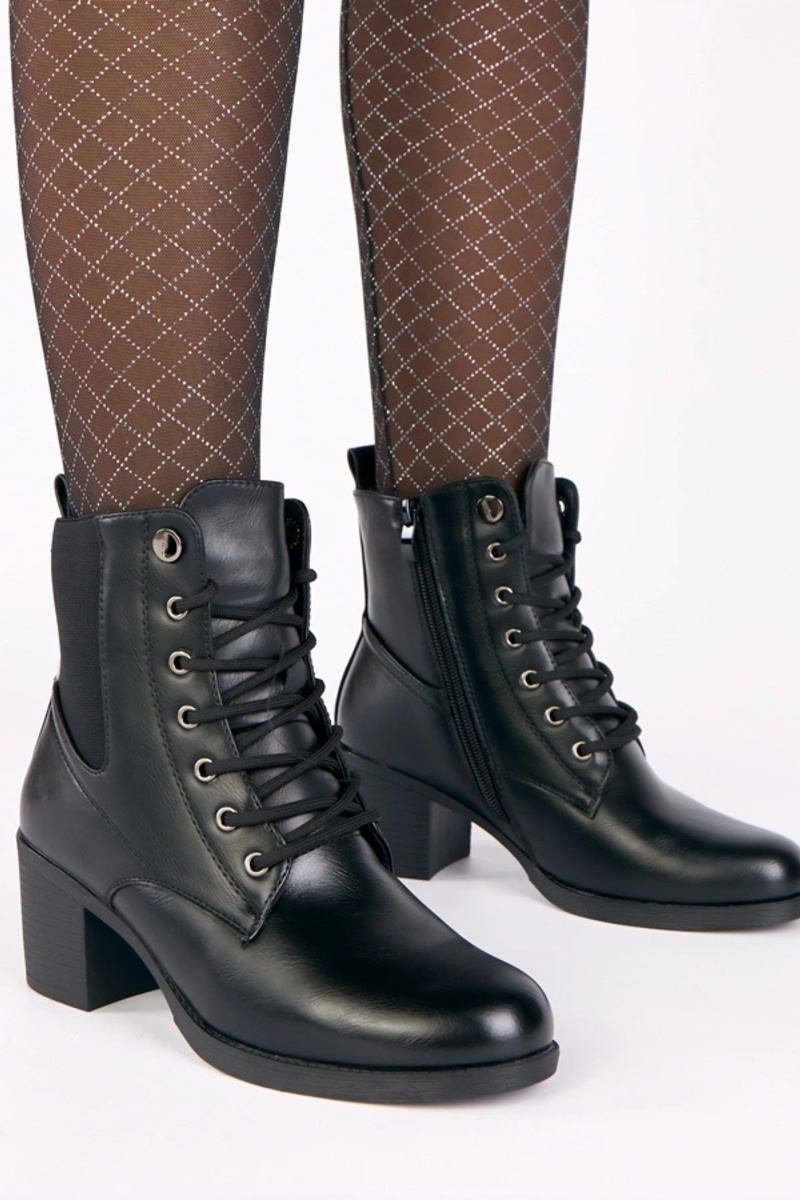 Schwarze Stiefeletten auf Absatz mit elastischem Einsatz Livia
