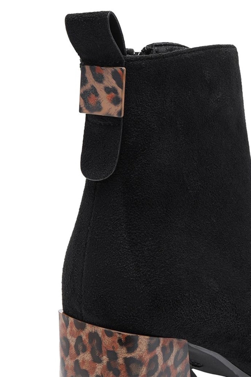 Schwarze Stiefel mit lackiertem Absatz im Leopardenmuster Gena