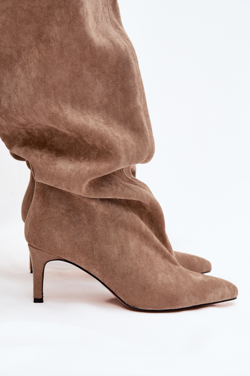 Damen lange Stiefel mit dünnen Absätzen, Schlupfmodell, sandfarben Tai turivilla