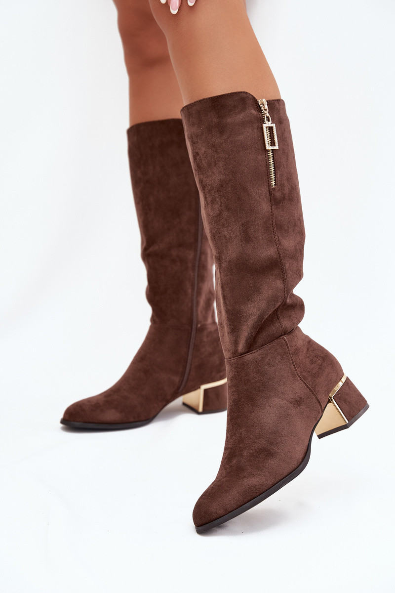 Braune Damenlangschaftstiefel aus Eco-Suede mit kleinen Absätzen Lyvienne