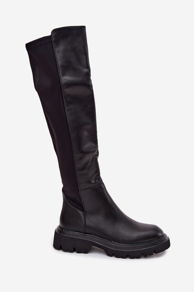Eingezogene Damenstiefel aus Eco-Leder, schwarz, Sylvina
