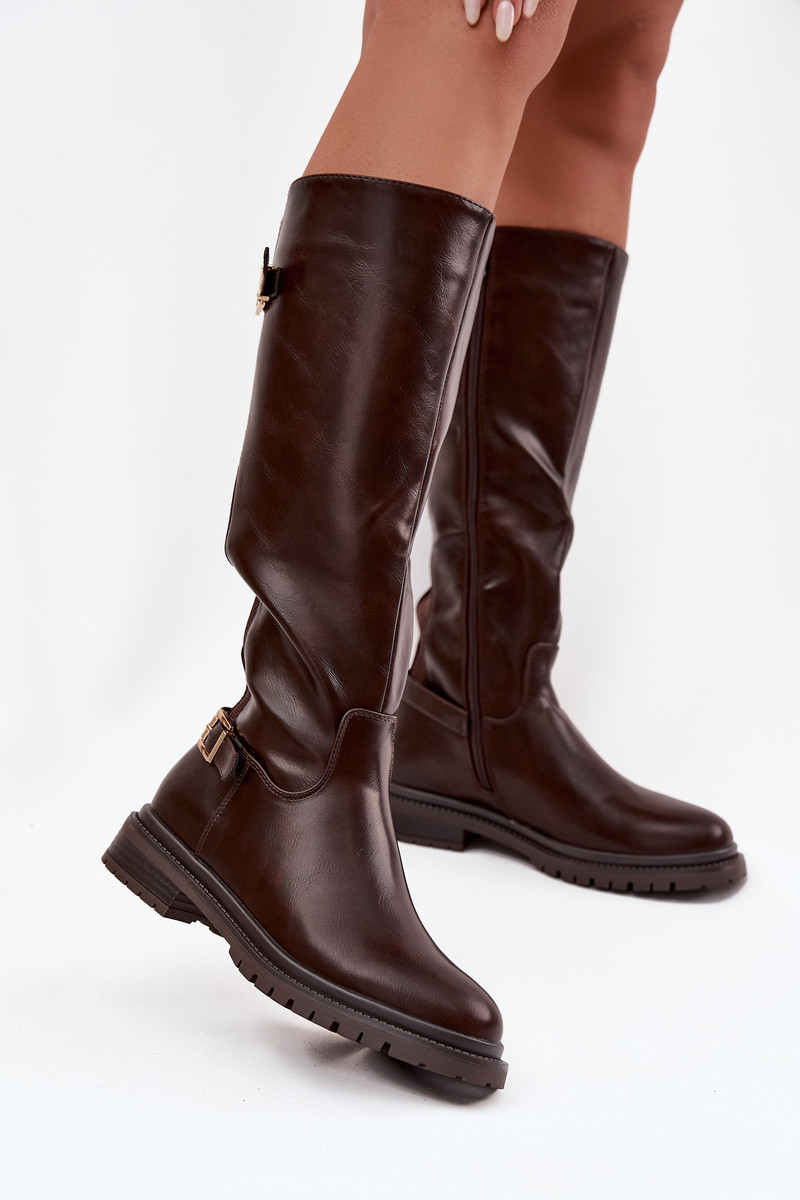 sich Zuarm laufen Damenstiefel mit breiten Absätzen mit Schnallen CzekoladoZue Sorelle
