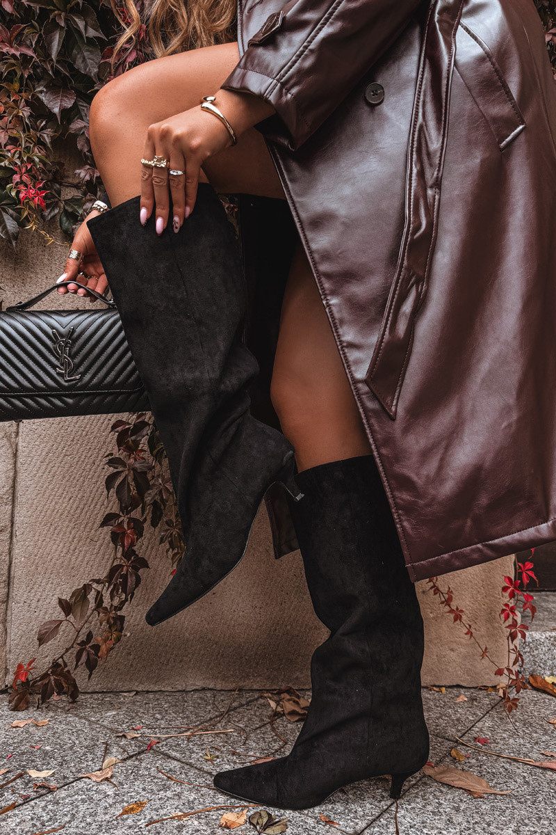 Damen Stiefel mit Absätzen aus Kunstvelours in Schwarz Pheona
