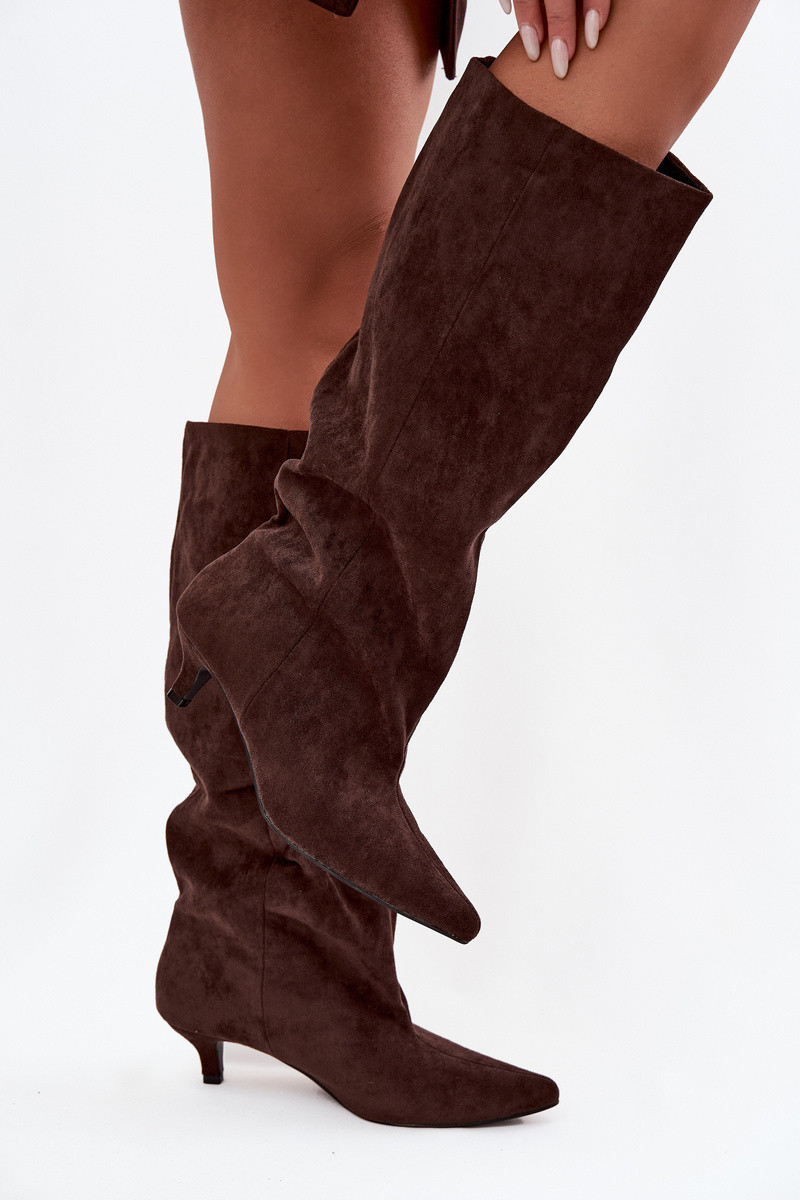 Damen Stiefel mit Absätzen aus Kunstvelours in Mittelbraun Pheona